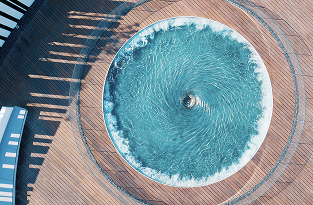 水本無形,它的物理特性讓它能輕易地跟隨容器而呈現(xiàn)不同的面貌。獨特的延展性使得水能呈現(xiàn)無以計數(shù)的不同效果。燈光的布置,介質(zhì)的紋理,顏色和動態(tài)都能給水帶來無窮的變化。